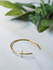 The Abide Bracelet is a delicate, hammered brass bracelet shaped into a simple cross, handcrafted by talented yet impoverished artisans in Kenya. Each piece is carefully cut and hammered by hand, giving the bracelet a unique, organic texture. Let it serve as a quiet symbol of faith and resilience, while supporting dignified employment and entrepreneurship training for men and women in Kenya.