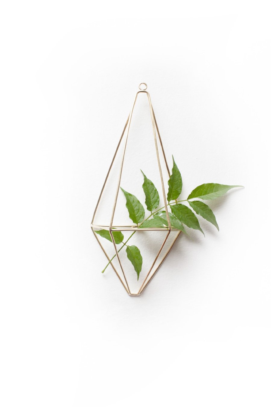 This stunning geometric piece is handcrafted with brass by artisans in Kibera, an impoverished area of Nairobi, Kenya. Each wire is carefully measured and sculptured then soldered together to create this unique wall planter.