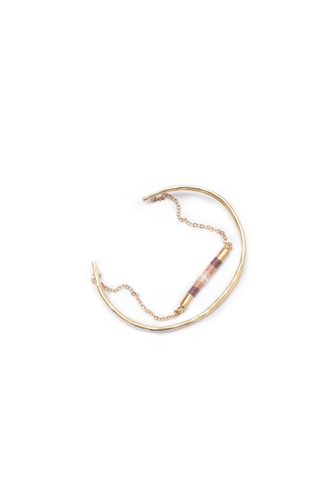 Perfectly suited for layering or as a statement piece, this unique bracelet is a beautiful combination of hand soldered brass and delicate threading. Each piece features a four-color threaded pendant carefully hand wrapped by the Jimani ladies in Nairobi, Kenya.